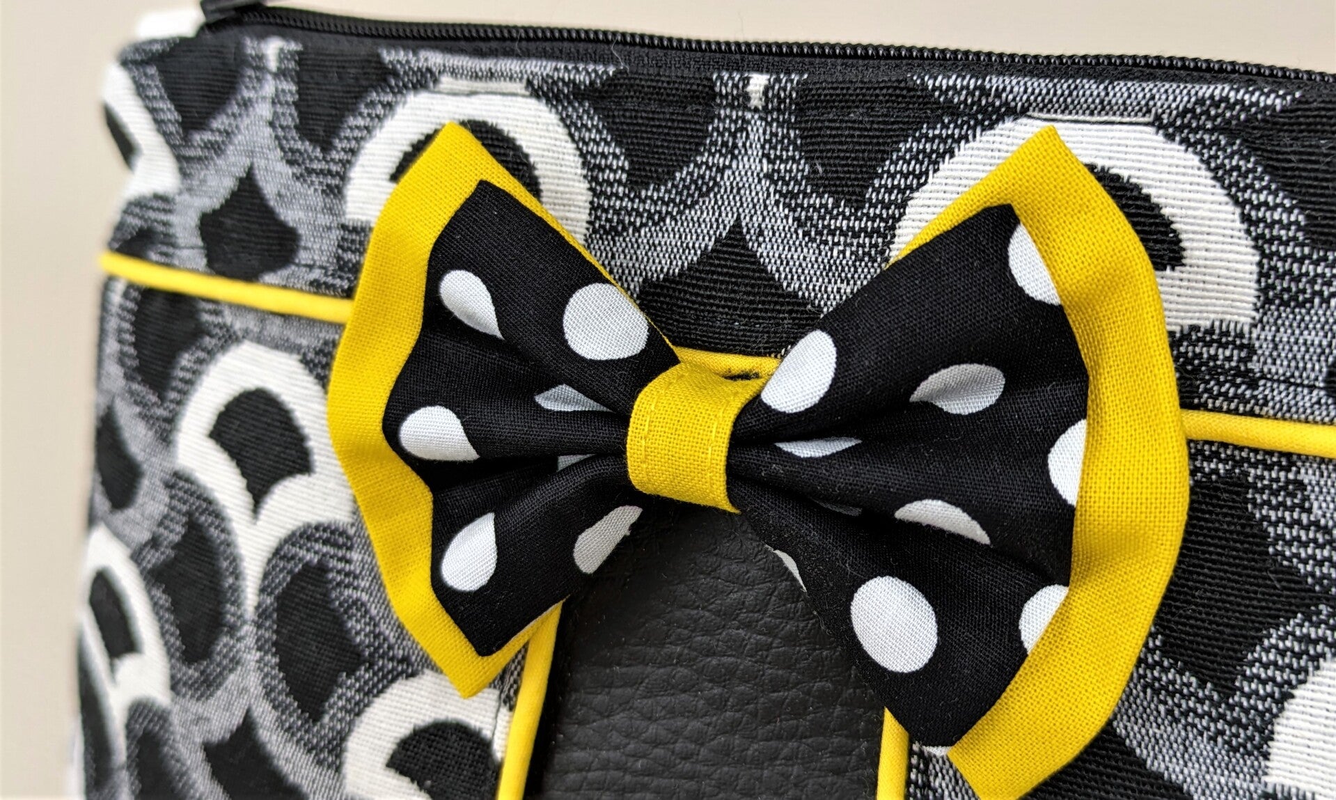 Le chic du noir et blanc associé à la fantaisie du jaune, tu l’as achetée où ta pochette ?