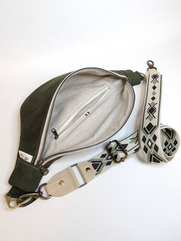 Tout l’ensemble est fabriqué par mes soins avec passion et rigueur (banane et bandoulière).
