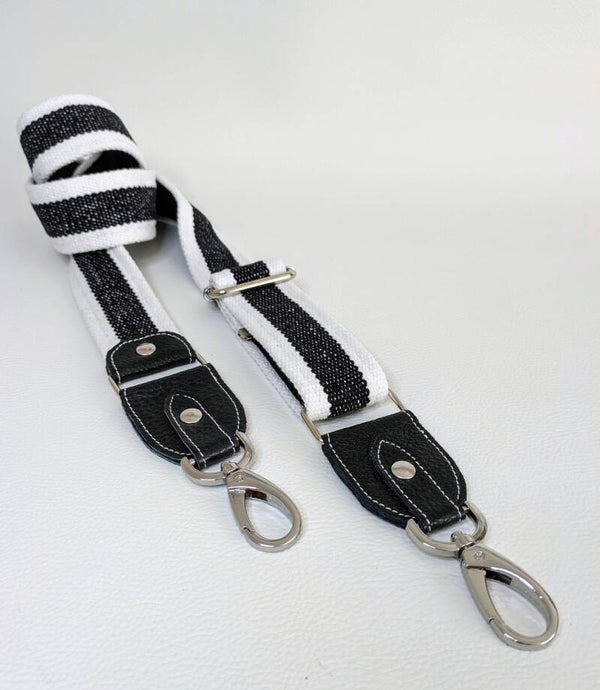 La bandoulière est réglable et les connecteurs sont en cuir.